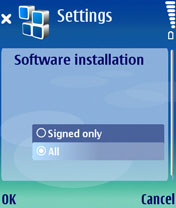 Buka Menu → Tools → App. Manager → Options → Settings → Software installation – kemudian ubah ke “All”, kemudian restart (matikan dan hidupkan lagi) ponsel anda. Selamt mencoba